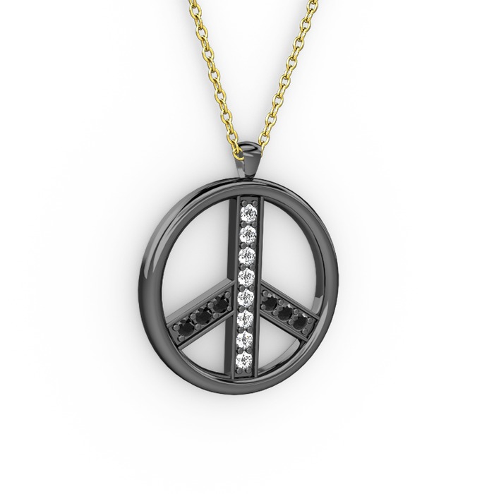 Pırlanta ve siyah zirkon 925 ayar siyah rodyum kaplama gümüş kolye (0.12 karat, 40 cm altın rolo zincir)