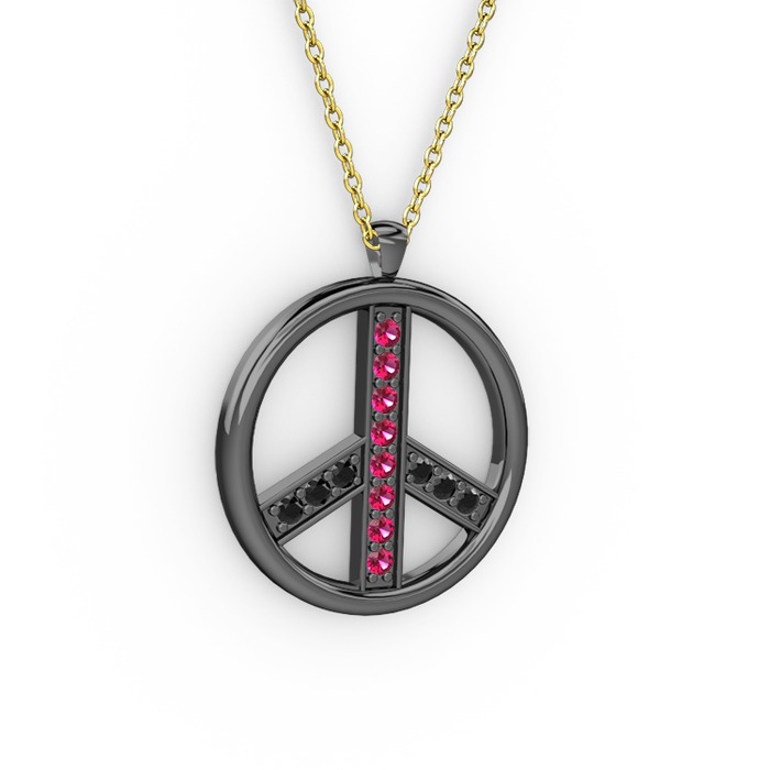 Rodolit garnet ve siyah zirkon 925 ayar siyah rodyum kaplama gümüş kolye (40 cm altın rolo zincir)