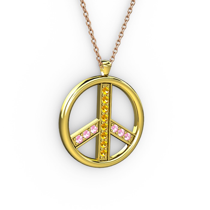Sitrin ve pembe kuvars 18 ayar altın kolye (40 cm rose altın rolo zincir)