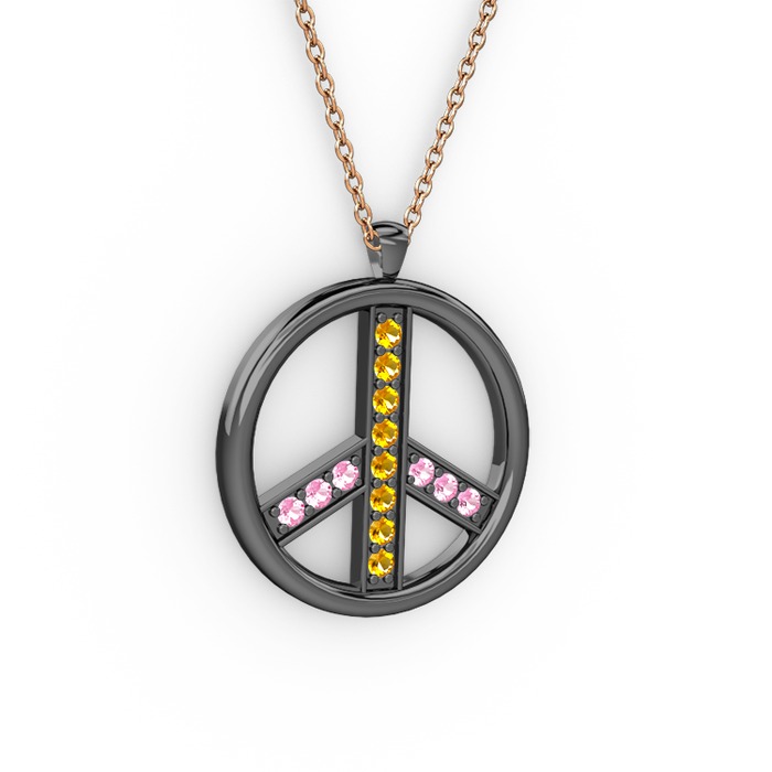 Sitrin ve pembe kuvars 925 ayar siyah rodyum kaplama gümüş kolye (40 cm gümüş rolo zincir)