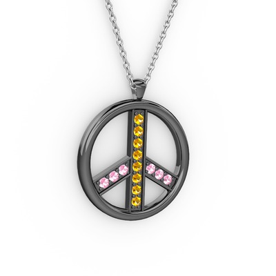 Sitrin ve pembe kuvars 925 ayar siyah rodyum kaplama gümüş kolye (40 cm gümüş rolo zincir)