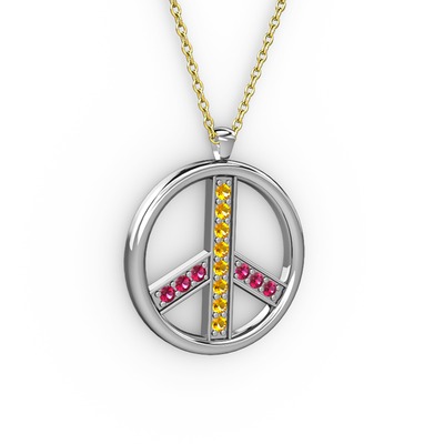 Sitrin ve rodolit garnet 8 ayar beyaz altın kolye (40 cm gümüş rolo zincir)