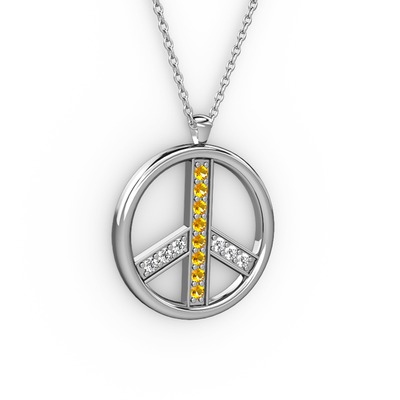 Sitrin ve swarovski 8 ayar beyaz altın kolye (40 cm beyaz altın rolo zincir)
