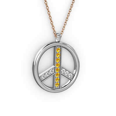 Sitrin ve swarovski 925 ayar gümüş kolye (40 cm rose altın rolo zincir)