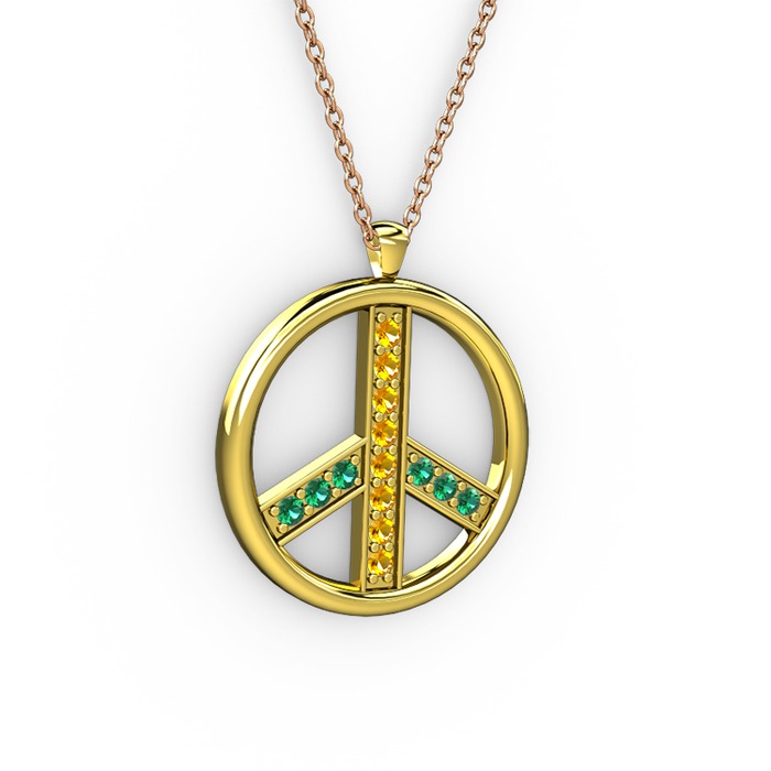 Sitrin ve yeşil kuvars 18 ayar altın kolye (40 cm rose altın rolo zincir)