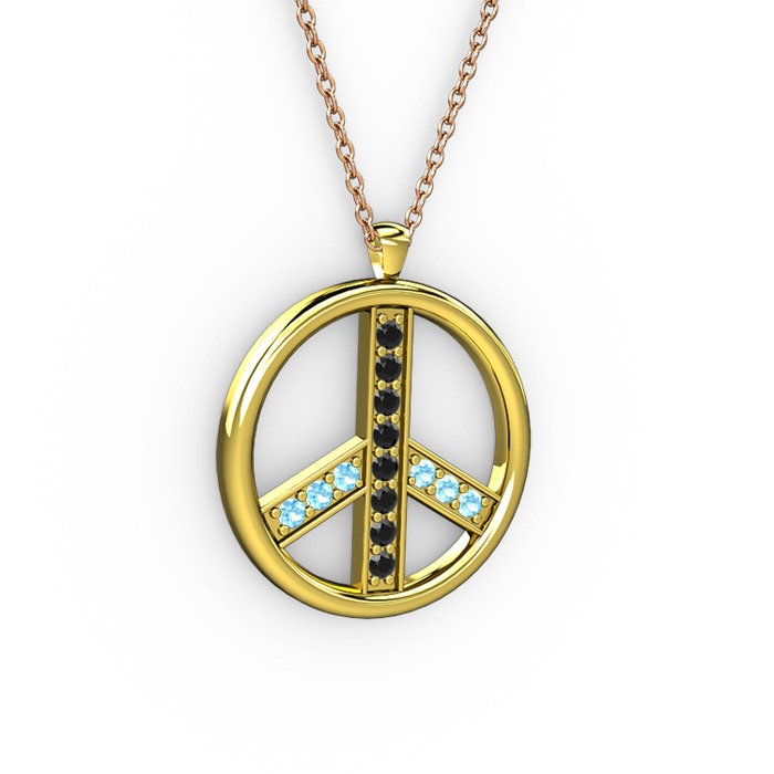Siyah zirkon ve akuamarin 925 ayar altın kaplama gümüş kolye (40 cm rose altın rolo zincir)
