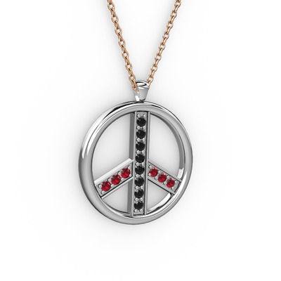 Siyah zirkon ve garnet 925 ayar gümüş kolye (40 cm rose altın rolo zincir)