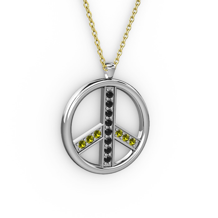 Siyah zirkon ve peridot 18 ayar beyaz altın kolye (40 cm altın rolo zincir)