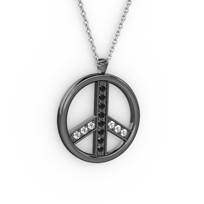 Barış Kolye - Siyah zirkon ve swarovski 925 ayar siyah rodyum kaplama gümüş kolye (40 cm gümüş rolo zincir)