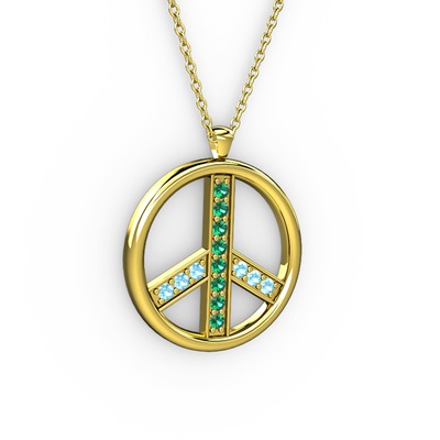 Yeşil kuvars ve akuamarin 18 ayar altın kolye (40 cm altın rolo zincir)
