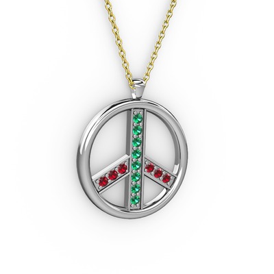 Yeşil kuvars ve garnet 18 ayar beyaz altın kolye (40 cm altın rolo zincir)