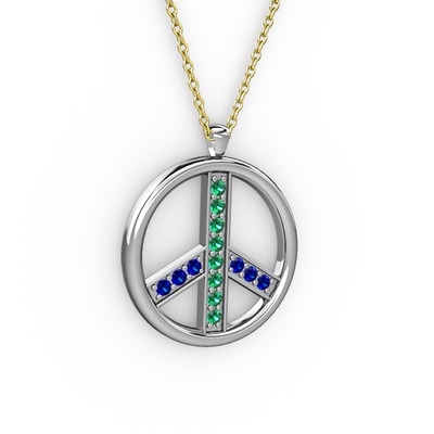Yeşil kuvars ve lab safir 8 ayar beyaz altın kolye (40 cm altın rolo zincir)