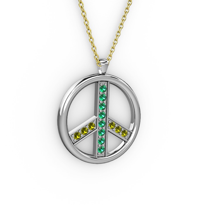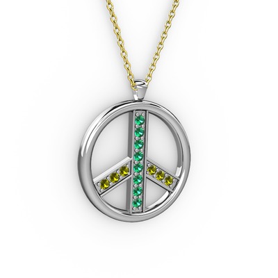 Yeşil kuvars ve peridot 8 ayar beyaz altın kolye (40 cm altın rolo zincir)