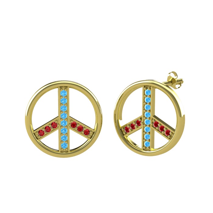 Akuamarin ve garnet 8 ayar altın küpe