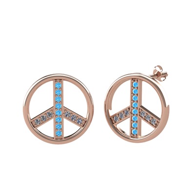 Akuamarin ve pırlanta 14 ayar rose altın küpe (0.108 karat)