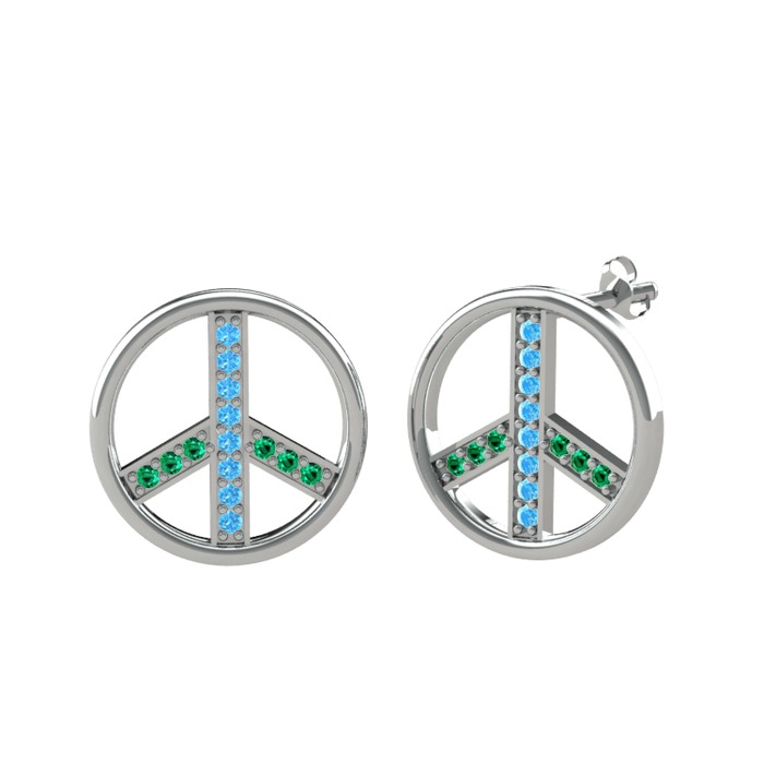 Akuamarin ve yeşil kuvars 18 ayar beyaz altın küpe