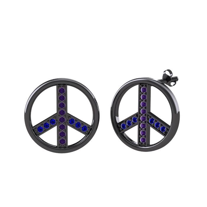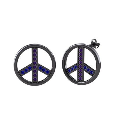 Ametist ve lab safir 925 ayar siyah rodyum kaplama gümüş küpe
