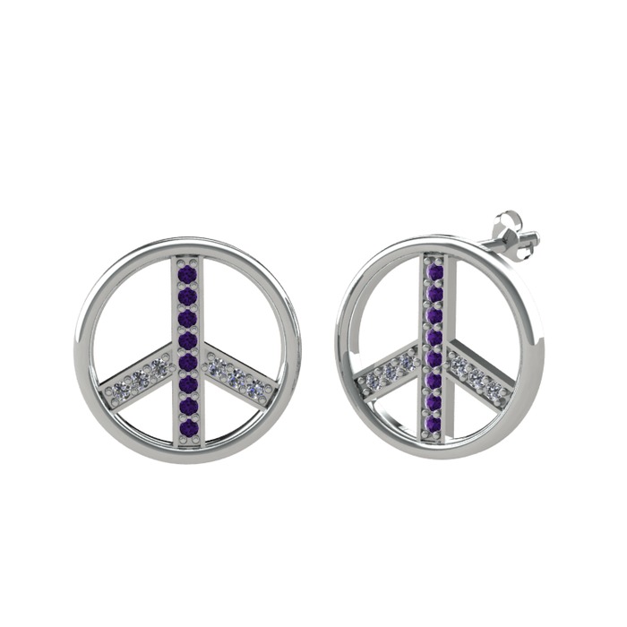 Ametist ve pırlanta 8 ayar beyaz altın küpe (0.108 karat)