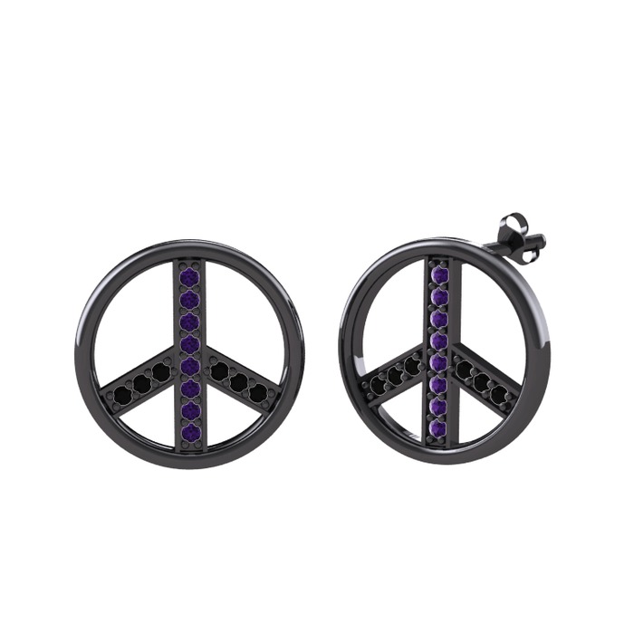 Ametist ve siyah zirkon 925 ayar siyah rodyum kaplama gümüş küpe
