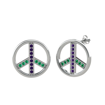 Ametist ve yeşil kuvars 14 ayar beyaz altın küpe