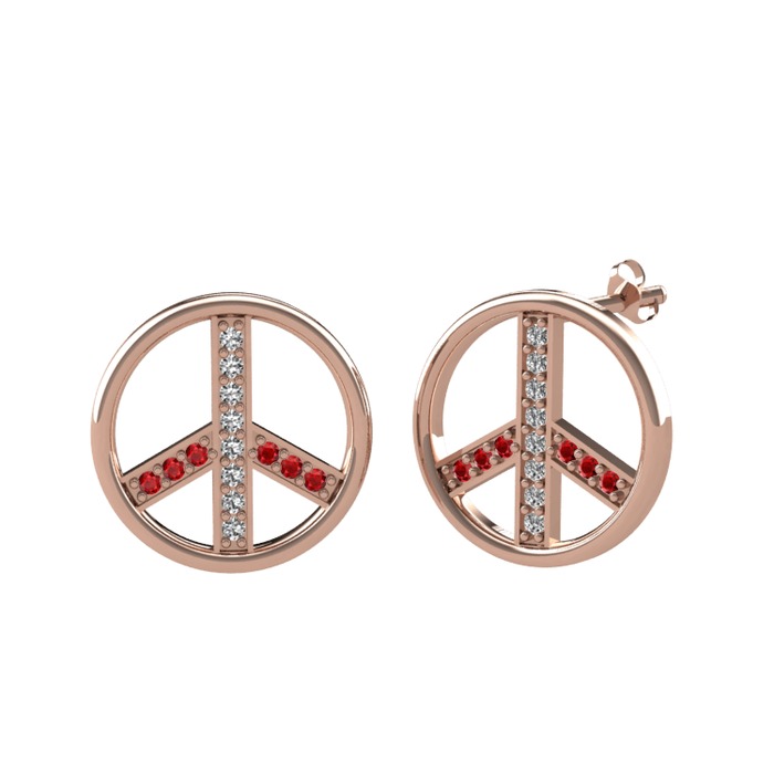 Beyaz zirkon ve garnet 18 ayar rose altın küpe