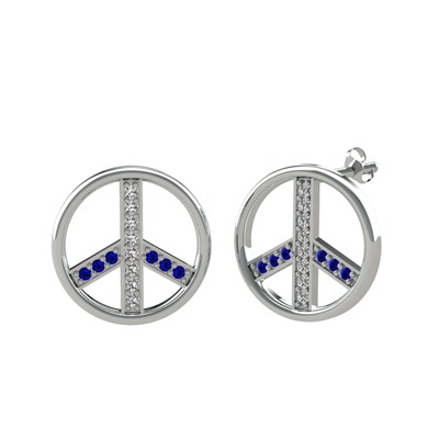Beyaz zirkon ve lab safir 18 ayar beyaz altın küpe