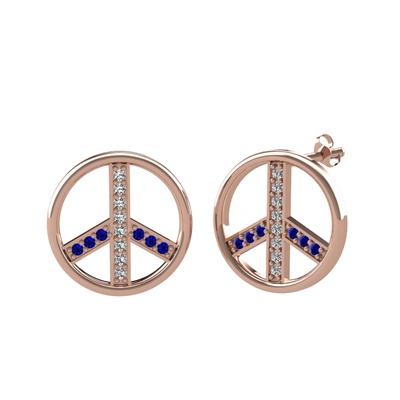Beyaz zirkon ve lab safir 18 ayar rose altın küpe