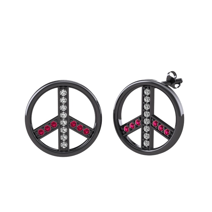 Beyaz zirkon ve rodolit garnet 925 ayar siyah rodyum kaplama gümüş küpe