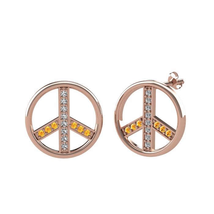 Beyaz zirkon ve sitrin 8 ayar rose altın küpe