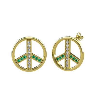 Beyaz zirkon ve yeşil kuvars 14 ayar altın küpe