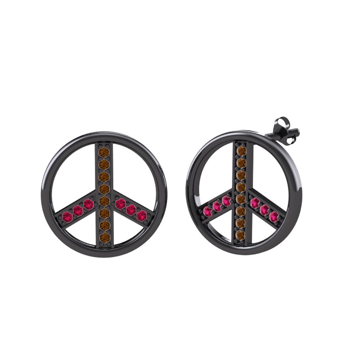 Dumanlı kuvars ve rodolit garnet 925 ayar siyah rodyum kaplama gümüş küpe