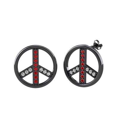 Garnet ve beyaz zirkon 925 ayar siyah rodyum kaplama gümüş küpe