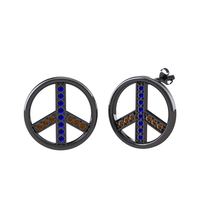 Lab safir ve dumanlı kuvars 925 ayar siyah rodyum kaplama gümüş küpe