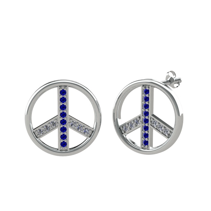 Lab safir ve pırlanta 925 ayar gümüş küpe (0.108 karat)