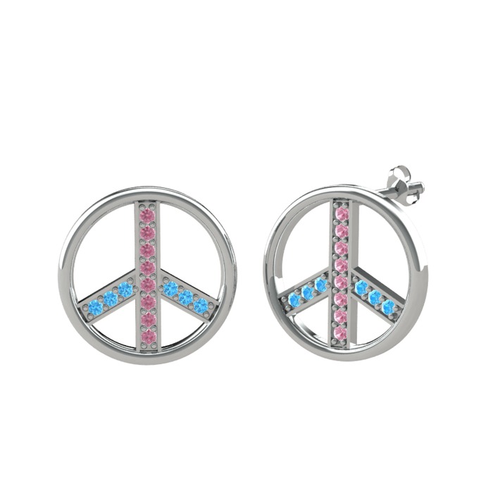 Pembe kuvars ve akuamarin 925 ayar gümüş küpe