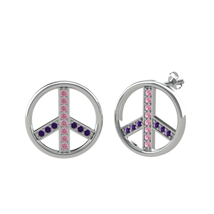 Pembe kuvars ve ametist 925 ayar gümüş küpe