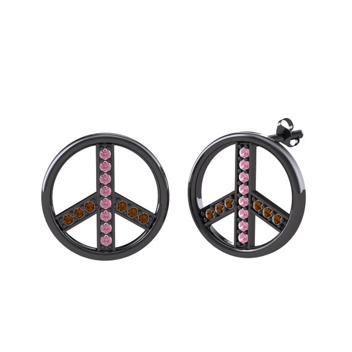 Pembe kuvars ve dumanlı kuvars 925 ayar siyah rodyum kaplama gümüş küpe
