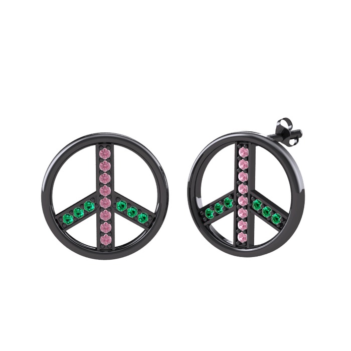 Pembe kuvars ve yeşil kuvars 925 ayar siyah rodyum kaplama gümüş küpe