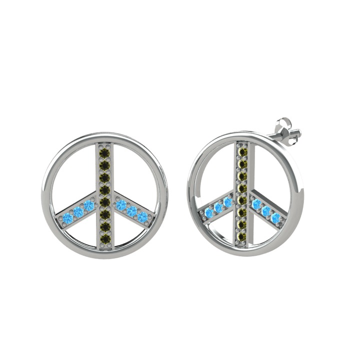 Peridot ve akuamarin 18 ayar beyaz altın küpe