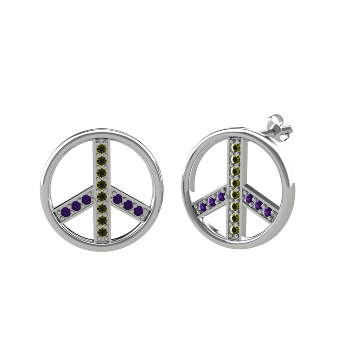 Peridot ve ametist 18 ayar beyaz altın küpe