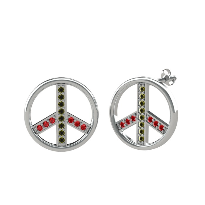 Peridot ve garnet 14 ayar beyaz altın küpe