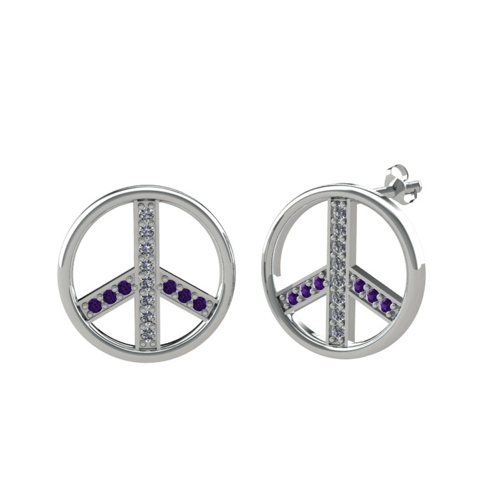 Pırlanta ve ametist 18 ayar beyaz altın küpe (0.144 karat)