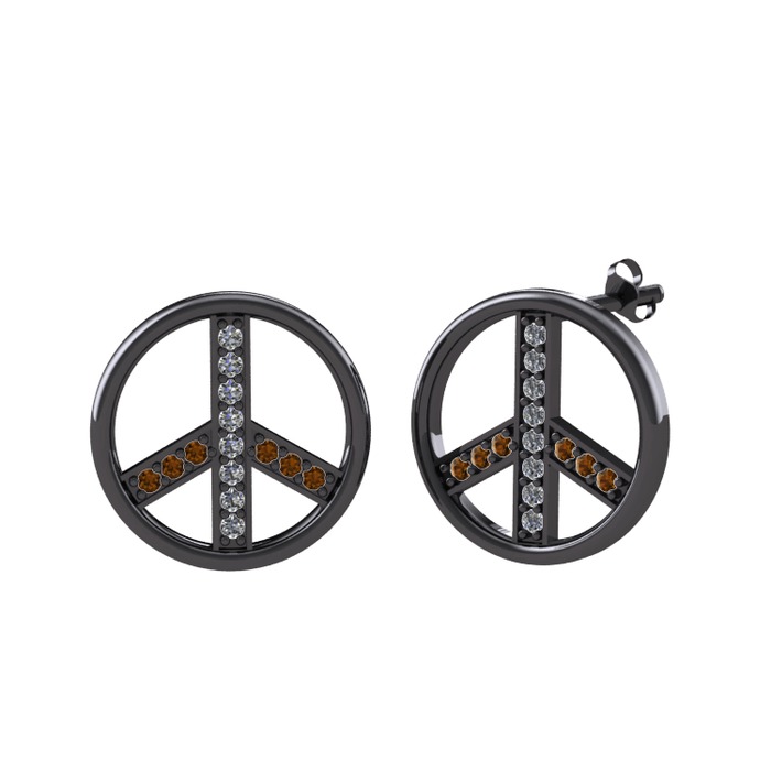 Pırlanta ve dumanlı kuvars 925 ayar siyah rodyum kaplama gümüş küpe (0.144 karat)