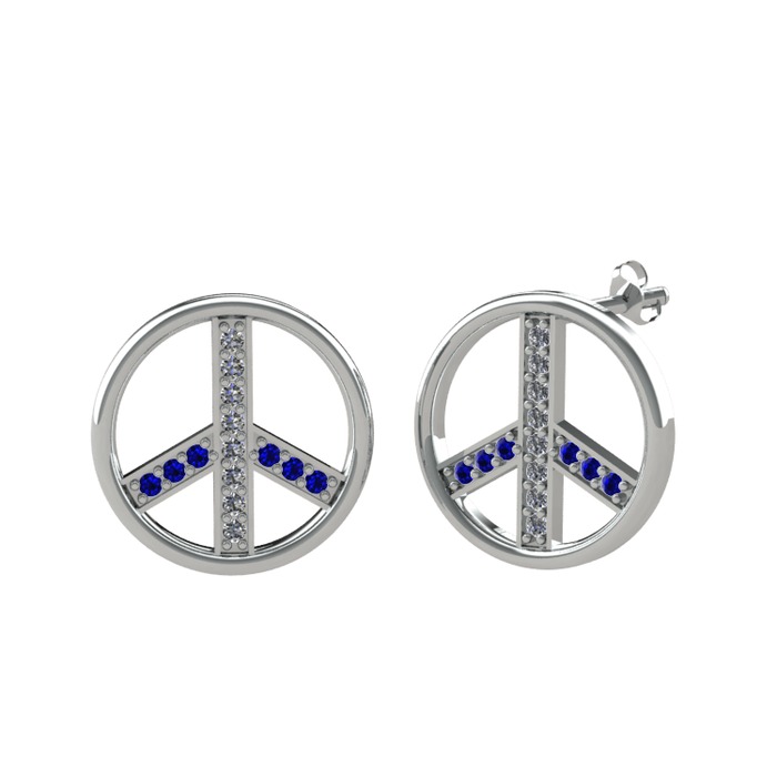 Pırlanta ve lab safir 14 ayar beyaz altın küpe (0.144 karat)