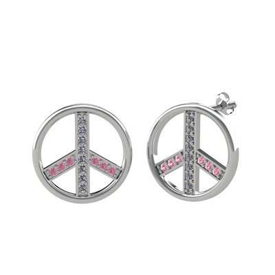 Pırlanta ve pembe kuvars 18 ayar beyaz altın küpe (0.144 karat)