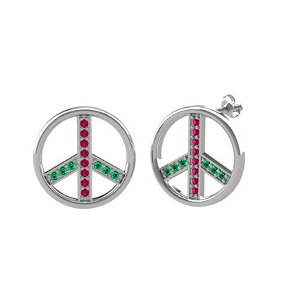Rodolit garnet ve yeşil kuvars 14 ayar beyaz altın küpe