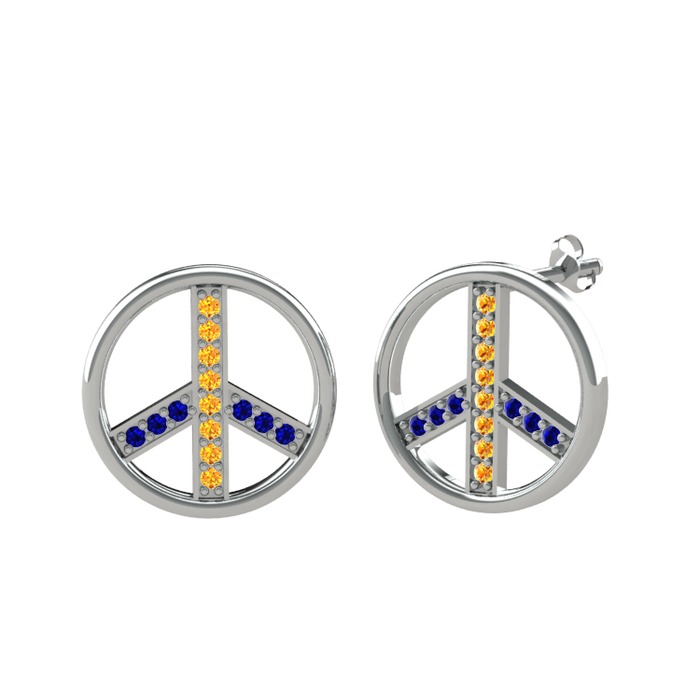 Sitrin ve lab safir 18 ayar beyaz altın küpe