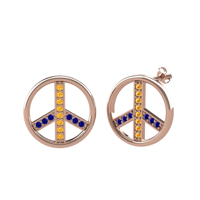 Sitrin ve lab safir 925 ayar rose altın kaplama gümüş küpe