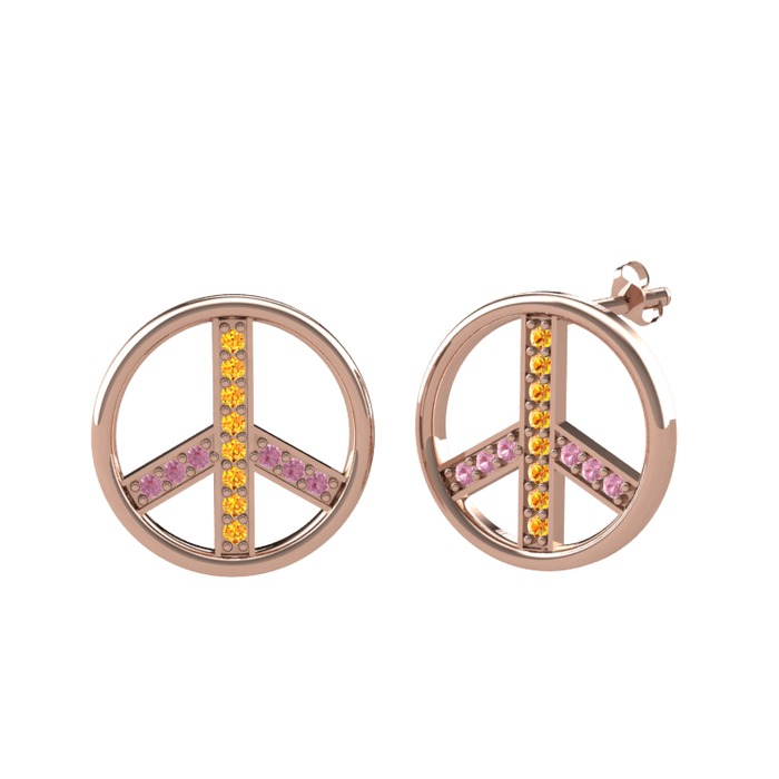 Sitrin ve pembe kuvars 925 ayar rose altın kaplama gümüş küpe
