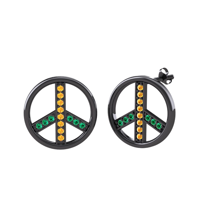 Sitrin ve yeşil kuvars 925 ayar siyah rodyum kaplama gümüş küpe